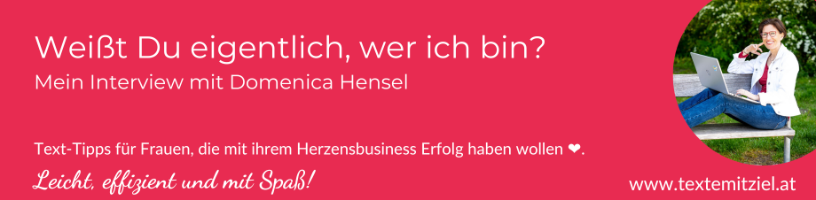 Das war in groben Zügen der Inhalt des Interviews! Hast Du noch weitere Fragen an mich? Dann schreib mir gerne an celine@textemitziel.at!