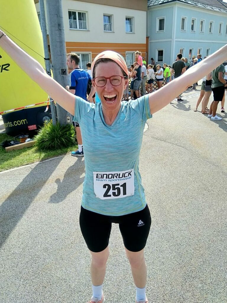 - 5,3 km in 44 Minuten gelaufen, als Letzte im Ziel, aber geschafft! Spontan im Mai, mit Steigungen, ohne Training, aber mit viel Motivation. Seit dem weiß ich: Es geht alles, wenn ich will. Das war mit mein beliebtestes Posting auf LinkedIn.